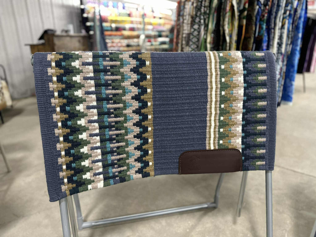 The Legacy western show blanket blends denim blue, navy, olive, and sage green with a hint of turquoise, creating a harmonious and calming palette. Crafted to provide both comfort and style, this blanket supports your horse’s presence in the show ring while enhancing their natural grace. Its balanced colors and quality design help you perform with confidence.