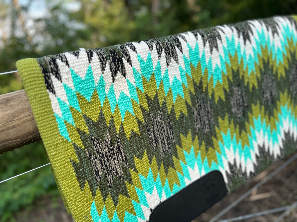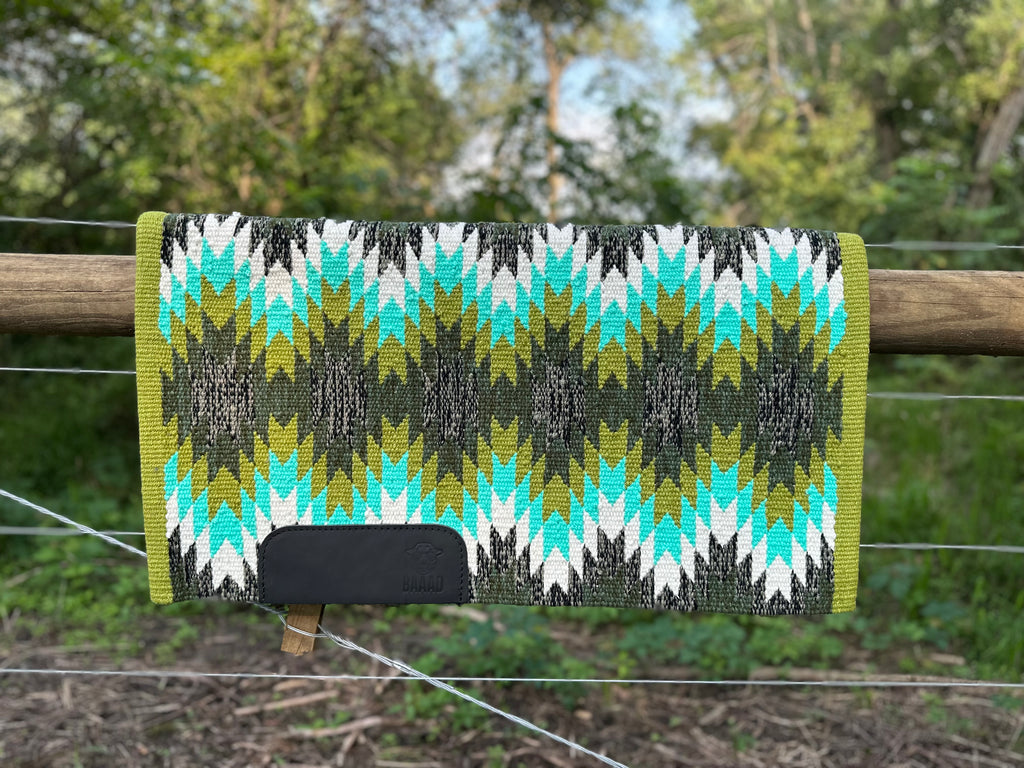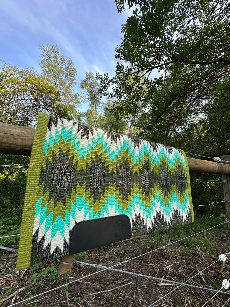 "Unleash your inner daredevil with Soul, the western show blanket that will make you stand out from the competition. Available in bold green, striking black/white roan, and eye-catching olive/robins egg roan and turquoise, this blanket will elevate your performance and leave a lasting impression. Experience the thrill of the ride with Soul!"